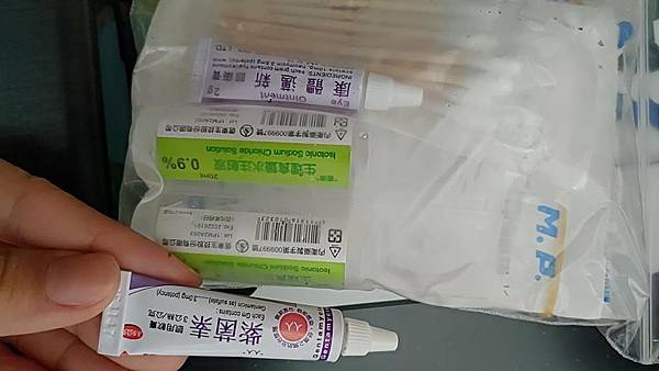 診所會給一包換藥包,要用食鹽水確實地將傷口清潔乾淨,並定時換藥